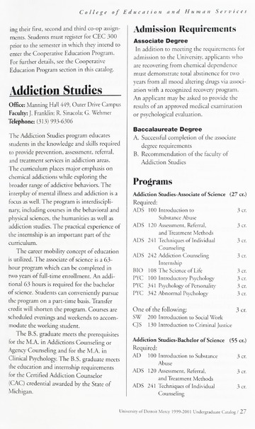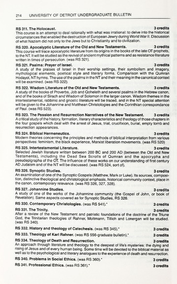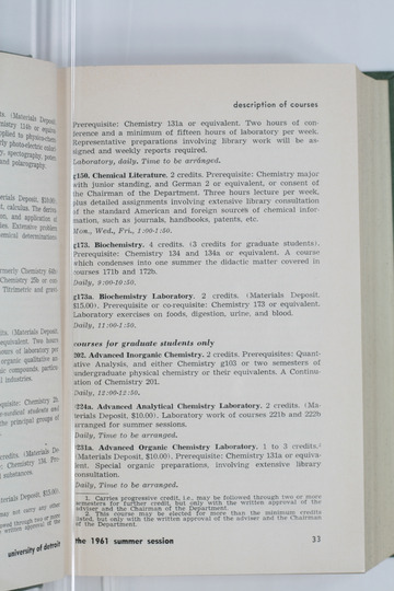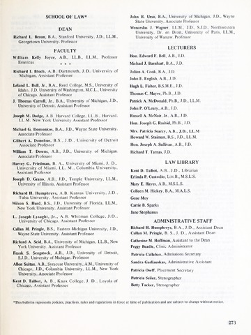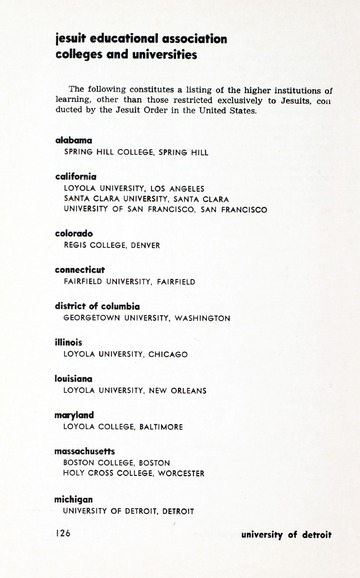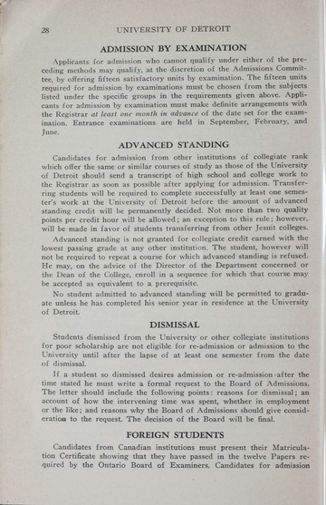 The historical Undergraduate and Graduate Catalogs contain information about academic programs, course descriptions and student services offered by University of Detroit Mercy or the previous institutions known as Mercy College of Detroit and University of Detroit. The catalogs also contain general University and specific academic policies and degree requirements for the academic year that the catalog was published. In some cases the catalogs spanned more than one academic year. The catalogs are the primary source of academic information and are intended to complement other university information including specific materials supplied by schools, colleges, departments, and programs.