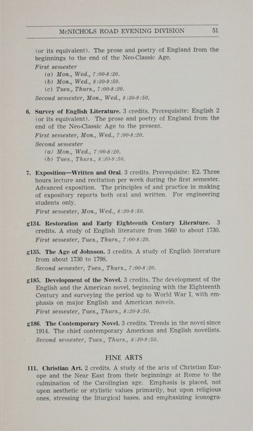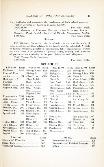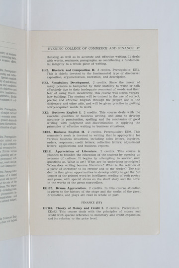 In addition to the degrees offered and course descriptions, from 1942-1955 the catalogues included the names of the Board of Trustee members, administrative officers, faculty, standing committees of faculty, historical sketches, and admission requirements. Beginning in 1956 information on Student Life, student publications, academic honors, alumnae association, financial aid, etc. was added.