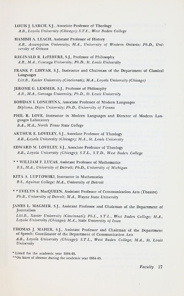 The first University Bulletin from Detroit College was published in 1877. Between 1877 and 1932 the bulletins included much more information than is found in recent catalogs. Beyond the description of the academic departments, and individual courses, the earlier publications included the University Calendar, faculty members, board of trustee members, scholarships awarded, honors lists, names of all class members and officers, and student organizations with officers. Detroit College bulletins from 1883 to 1915 listed all degrees conferred, years received and school. A notation was made for those alumni who were deceased.
