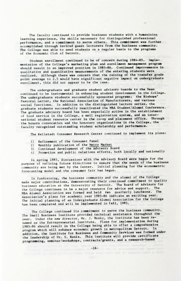 When viewed collectively, the booklets provide an ongoing history of the university. The annual reports have covered curricular changes, individual recognitions such as awards and grants received, new resources being provided to the university community, and community outreach efforts. In addition, changes in leadership, whether at the presidential or dean level, growth in specific programs as the faculty numbers increased, and the retirement or death of long serving members of the university are noted.