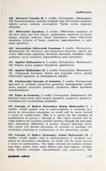 In addition to the degrees offered and course descriptions, from 1942-1955 the catalogues included the names of the Board of Trustee members, administrative officers, faculty, standing committees of faculty, historical sketches, and admission requirements. Beginning in 1956 information on Student Life, student publications, academic honors, alumnae association, financial aid, etc. was added.