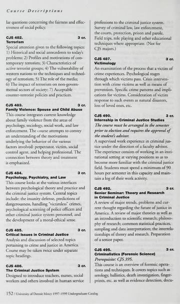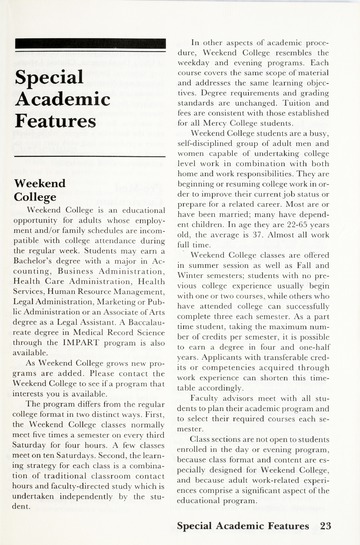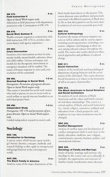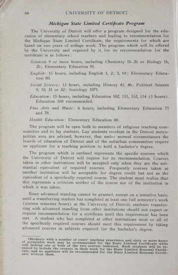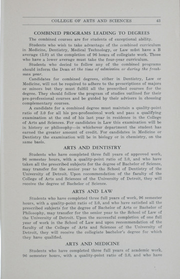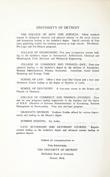 The historical Undergraduate and Graduate Catalogs contain information about academic programs, course descriptions and student services offered by University of Detroit Mercy or the previous institutions known as Mercy College of Detroit and University of Detroit. The catalogs also contain general University and specific academic policies and degree requirements for the academic year that the catalog was published. In some cases the catalogs spanned more than one academic year. The catalogs are the primary source of academic information and are intended to complement other university information including specific materials supplied by schools, colleges, departments, and programs.