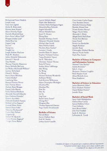 Commencement is an annual event at the University. The commencement program booklets for each annual ceremony held in the spring contain the names of those students who may have already graduated in the prior months or who are candidates to graduate before the end of the academic year.