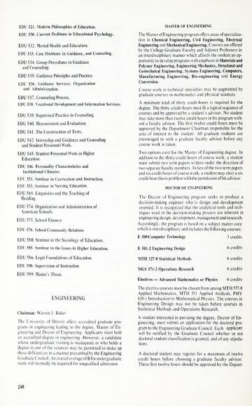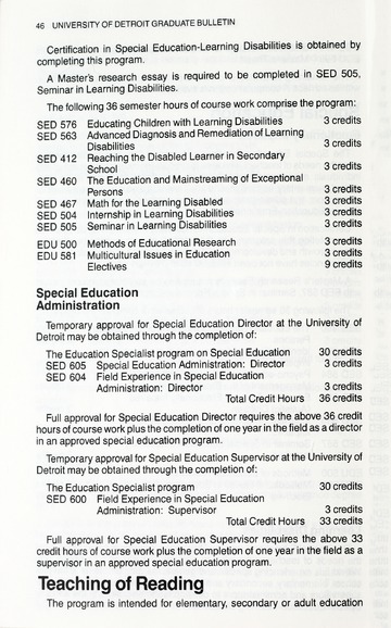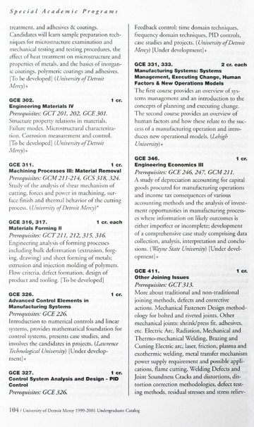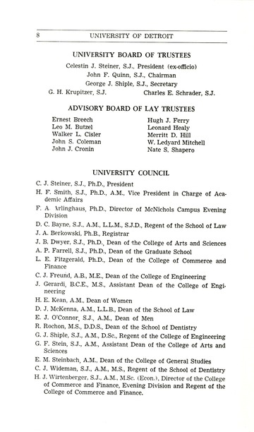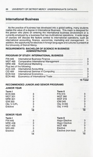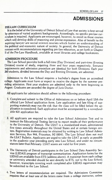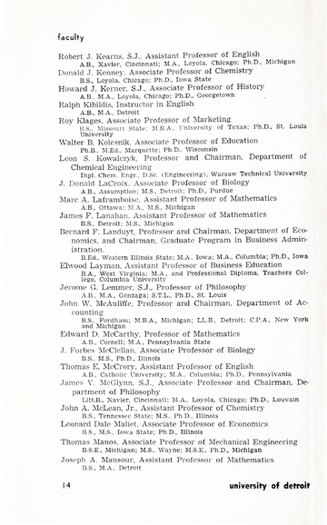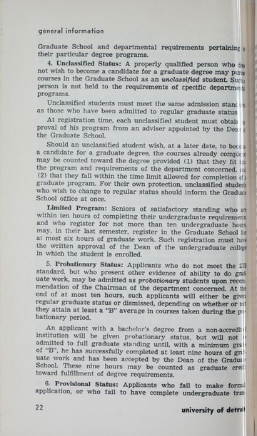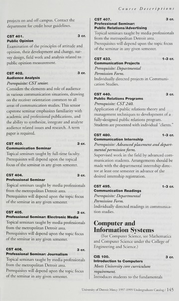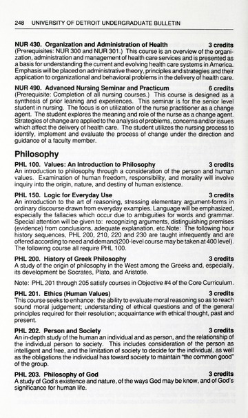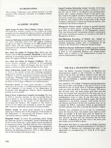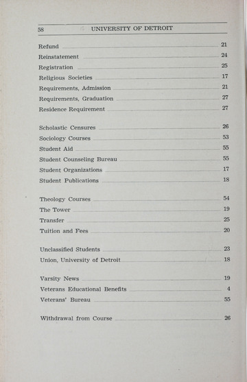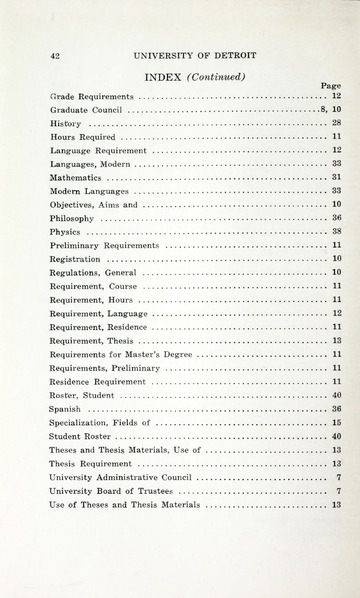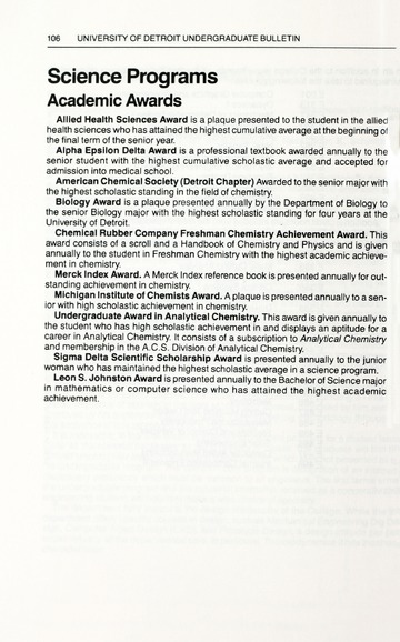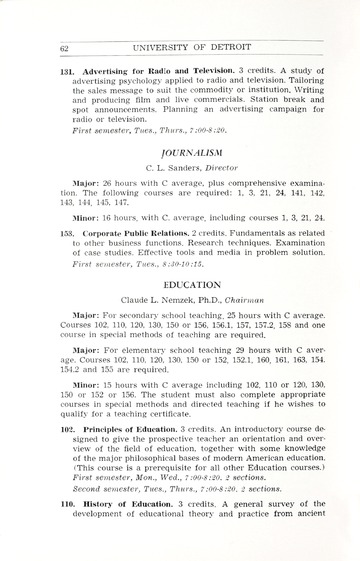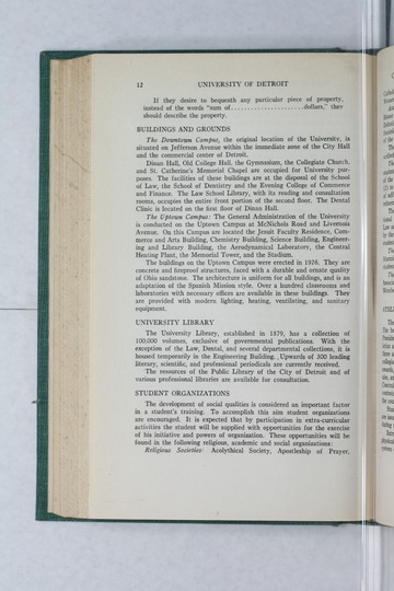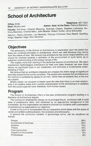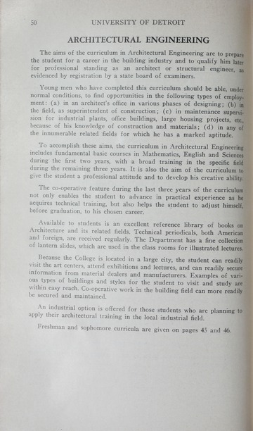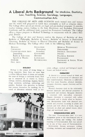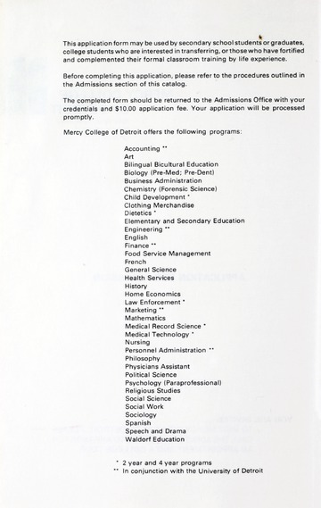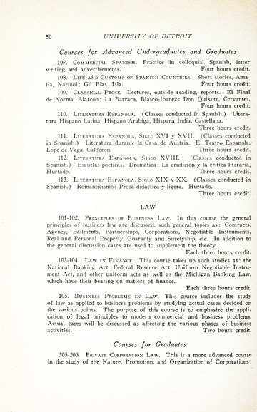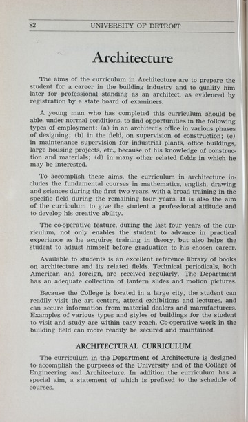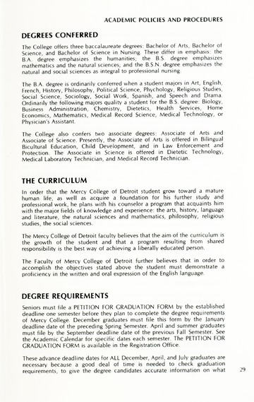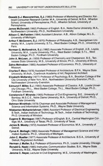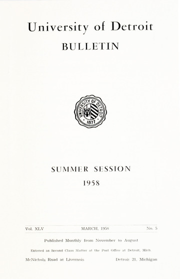The historical Undergraduate and Graduate Catalogs contain information about academic programs, course descriptions and student services offered by University of Detroit Mercy or the previous institutions known as Mercy College of Detroit and University of Detroit. The catalogs also contain general University and specific academic policies and degree requirements for the academic year that the catalog was published. In some cases the catalogs spanned more than one academic year. The catalogs are the primary source of academic information and are intended to complement other university information including specific materials supplied by schools, colleges, departments, and programs.
