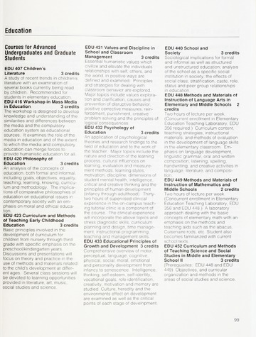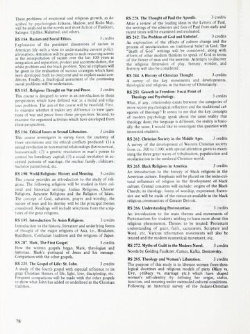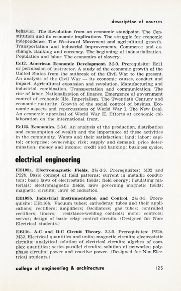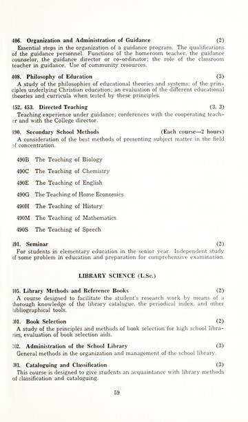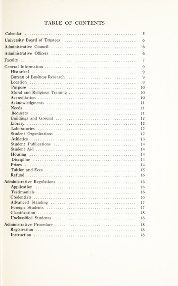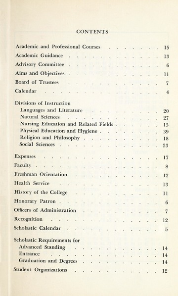 In addition to the degrees offered and course descriptions, from 1942-1955 the catalogues included the names of the Board of Trustee members, administrative officers, faculty, standing committees of faculty, historical sketches, and admission requirements. Beginning in 1956 information on Student Life, student publications, academic honors, alumnae association, financial aid, etc. was added.