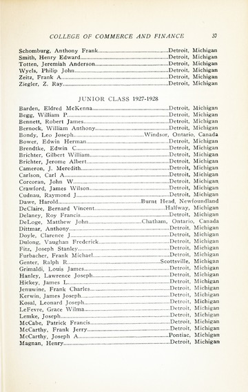 The first University Bulletin from Detroit College was published in 1877. Between 1877 and 1932 the bulletins included much more information than is found in recent catalogs. Beyond the description of the academic departments, and individual courses, the earlier publications included the University Calendar, faculty members, board of trustee members, scholarships awarded, honors lists, names of all class members and officers, and student organizations with officers. Detroit College bulletins from 1883 to 1915 listed all degrees conferred, years received and school. A notation was made for those alumni who were deceased.
