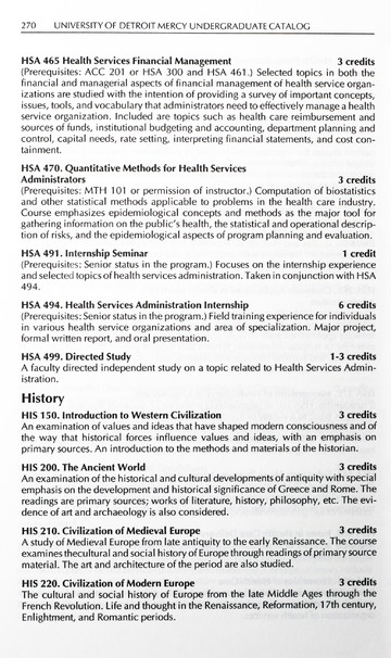 The Libraries Archive Research Center Special Collection includes the catalogues and bulletins published from the beginning through 2001. From 2002 through the present the catalogs are found on the university’s web site at http://www.udmercy.edu/catalog/rs for advanced study in higher institutions.