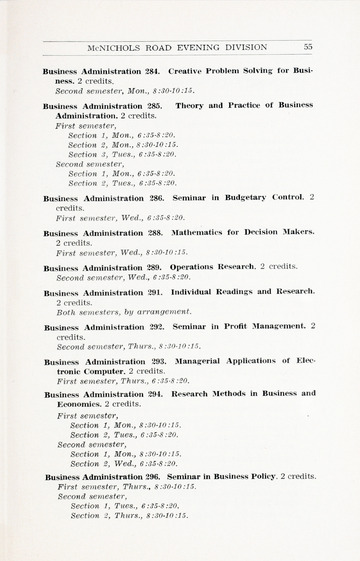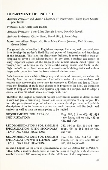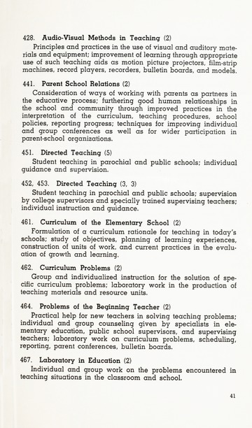 In addition to the degrees offered and course descriptions, from 1942-1955 the catalogues included the names of the Board of Trustee members, administrative officers, faculty, standing committees of faculty, historical sketches, and admission requirements. Beginning in 1956 information on Student Life, student publications, academic honors, alumnae association, financial aid, etc. was added.