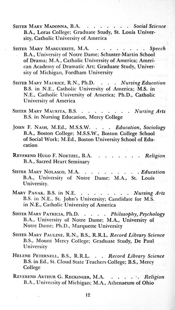 To provide a broad general education and also the requisite technical training for Sisters engaged in the parochial school….and in the hospitals; and prepare the Sisters for advanced study in higher institutions.