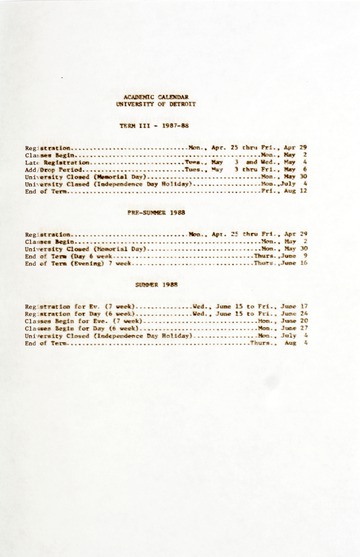 For assistance with this collection, please contact the the University Archivist, Mara Powell at 313-993-1950 or the library reference desk at 313-993-1071. You may also email the reference desk for assistance at edesk@udmercy.edu.