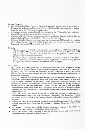 The second of the UDM Convocations is he Honors Convocation. Annually, the University of Detroit Mercy (previously University of Detroit and Mercy College of Detroit) recognizes those students who have achieved scholastic and service honors, special awards, and scholarships. Booklets are printed lising students named to the National Honor Societies, such as Alpha Psi Omega, and Kappa Gamma Pi.