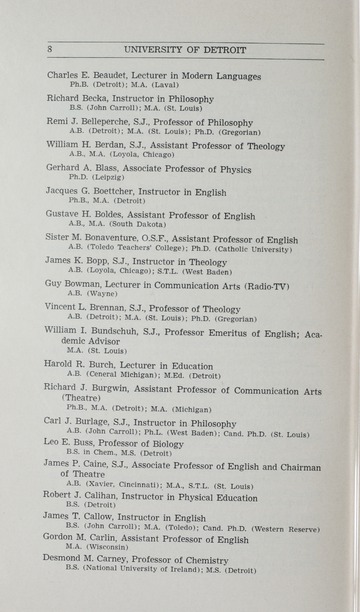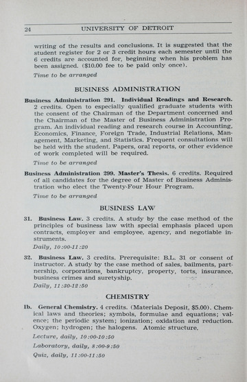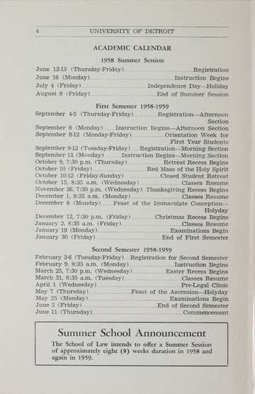 The historical Undergraduate and Graduate Catalogs contain information about academic programs, course descriptions and student services offered by University of Detroit Mercy or the previous institutions known as Mercy College of Detroit and University of Detroit. The catalogs also contain general University and specific academic policies and degree requirements for the academic year that the catalog was published. In some cases the catalogs spanned more than one academic year. The catalogs are the primary source of academic information and are intended to complement other university information including specific materials supplied by schools, colleges, departments, and programs.