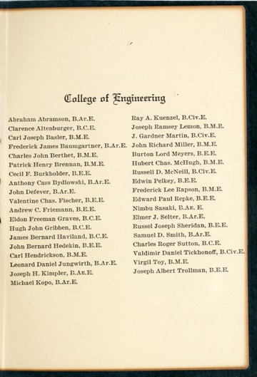In addition to the student graduation information, the commencement booklets provide a history of the individuals who served as presidents of the university, deans of the respective colleges/schools, grand marshals, honorary degree recipients, and speakers at the graduation ceremonies. With the title of degrees granted in each booklet, it is also possible to determine when specific degrees programs were added or discontinued within the university.